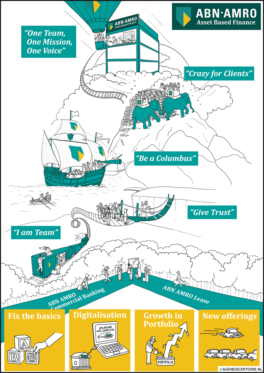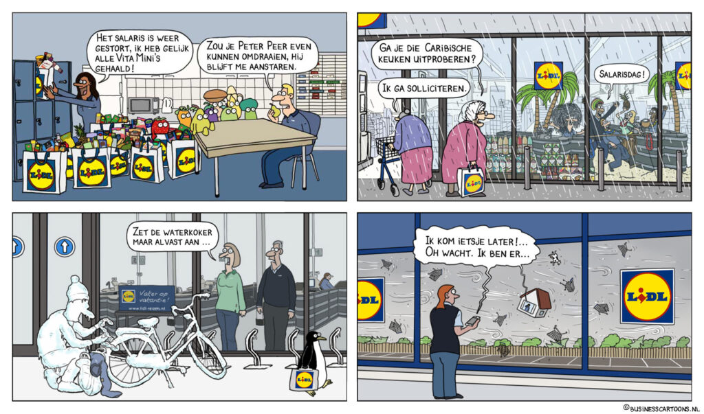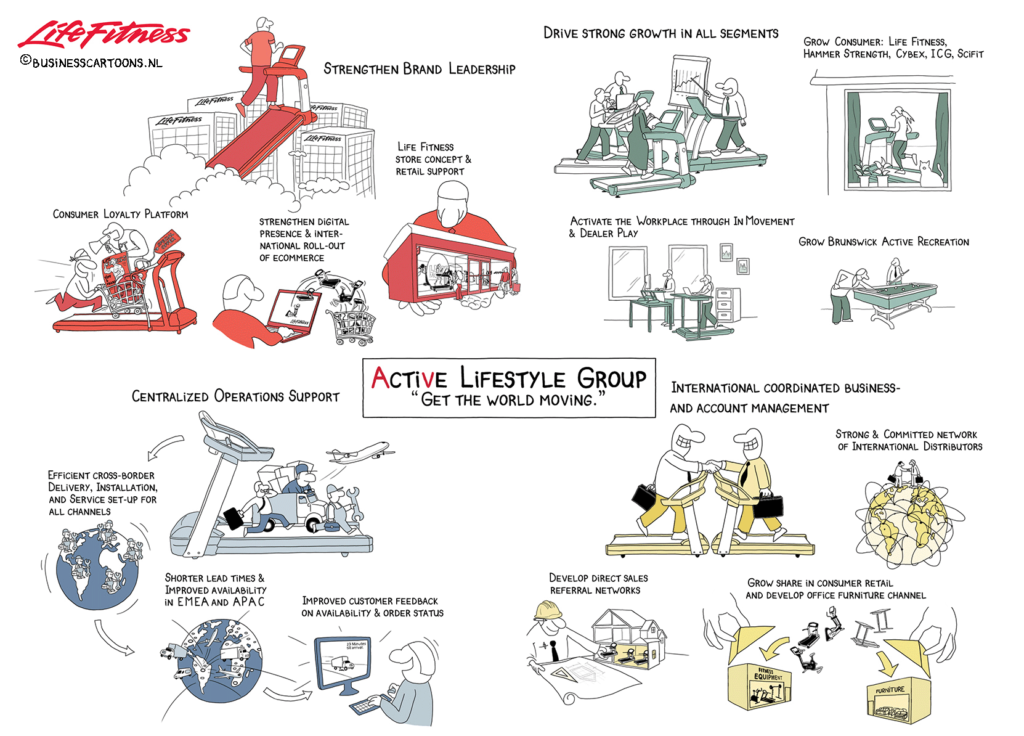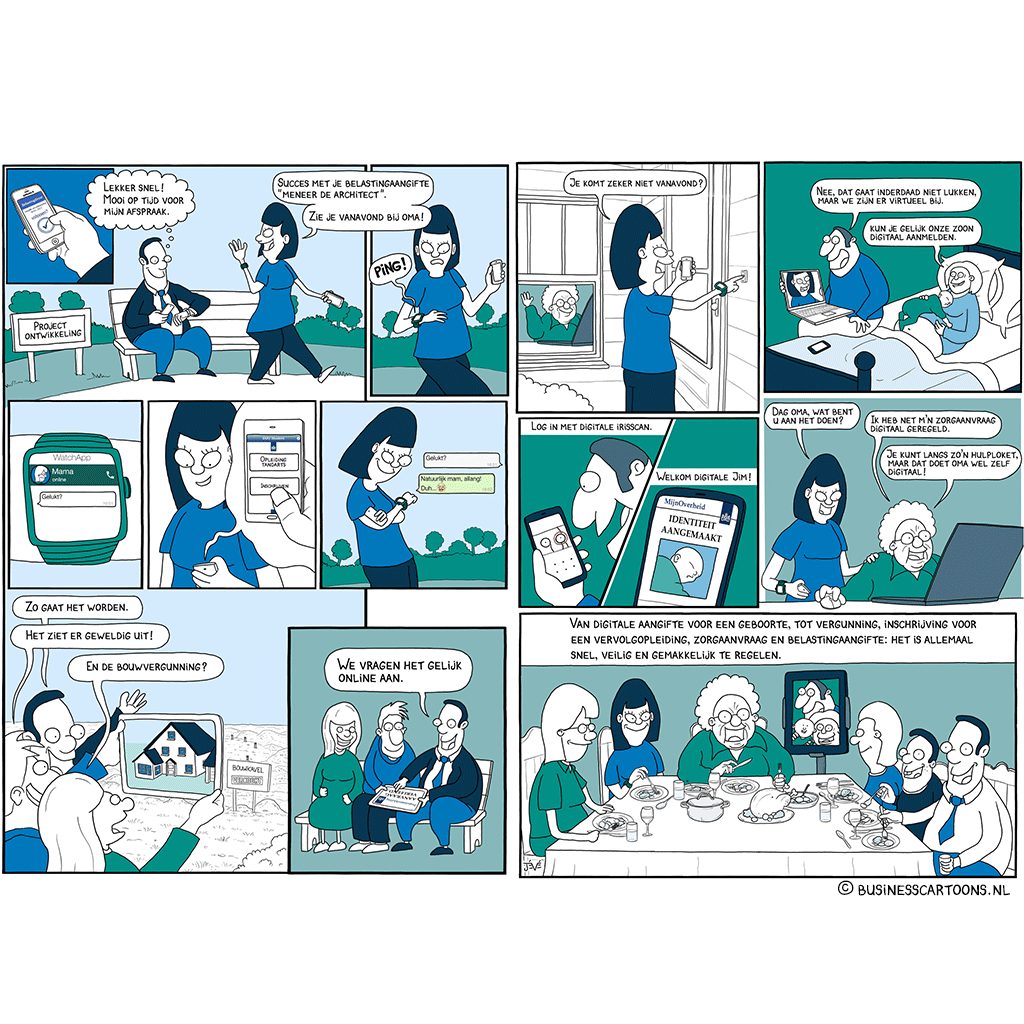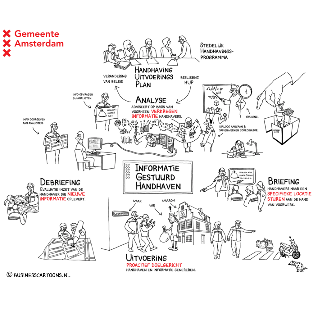 Cartoon Blanche helpt bedrijven en overheid om kernwaarden, strategieën en aankomende veranderingen in cartoontekeningen te communiceren.